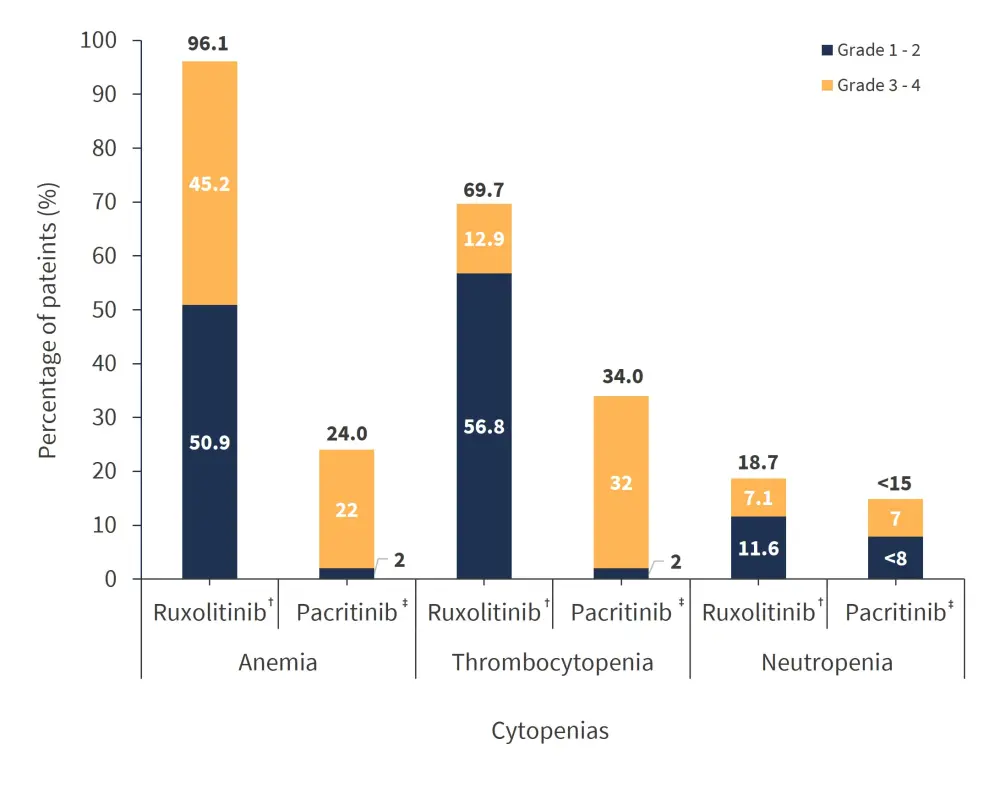 Figure 1. Summary of hematologic toxicities associated with ruxolitinib and pacritinib treatment*