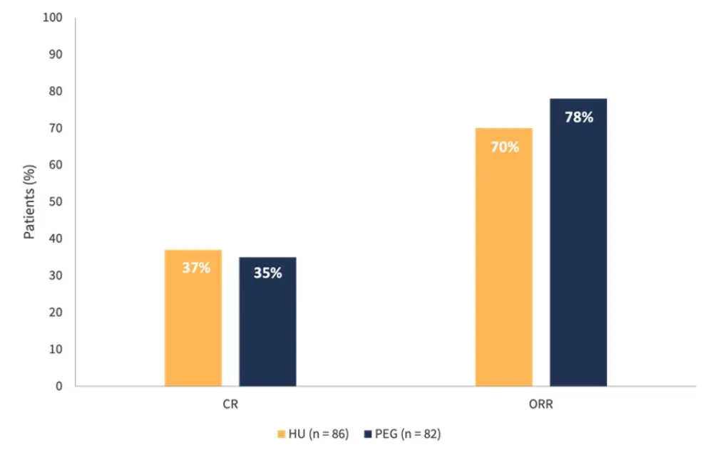 • ORR was greater in those receiving PEG compared with HU (86% vs 68%, respectively)