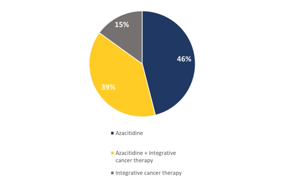 There was no significant difference in failure rate to reach HSCT between treatment with azacitidine or integrative cancer therapies; the failure rates were 22% and 28%, respectively.