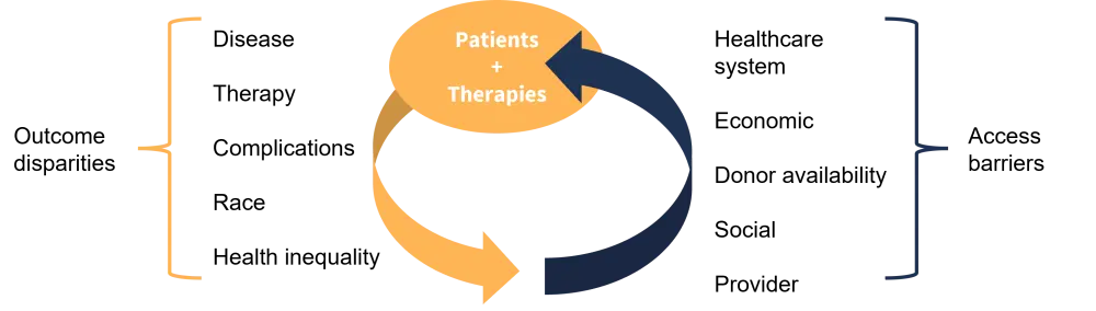 Examining different treatment and diagnostic options for patients undergoing bone marrow transplant (BMT) is an important part of improving outcomes. However, the wider context in which these transplants is occurring is also a crucial part of the equation and can exert great influence on the outcome of therapy. The race and ethnicity of patients can impact how likely a patient is to receive a BMT. The reasons for this are multifactorial and complex, covering a range of issues, including poverty, provider bias, healthcare infrastructure, and social factors (Figure 1).