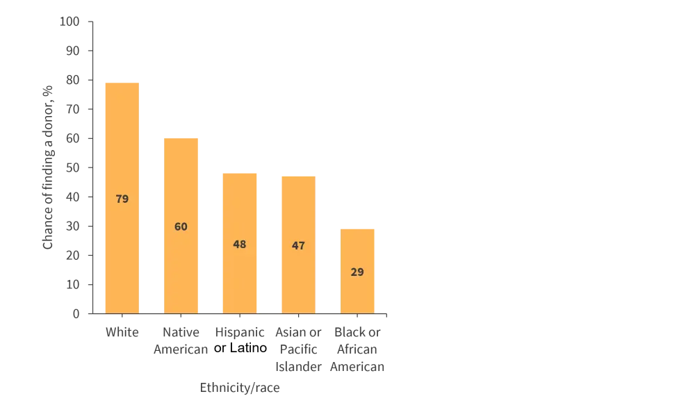 People with the same ethnic background have the best chance of being a match for a patient. In the NMDP, the chance of finding a match for a BMT varies depending on ethnic background. The chance of finding a donor for different ethnicities and race is shown in Figure 3.