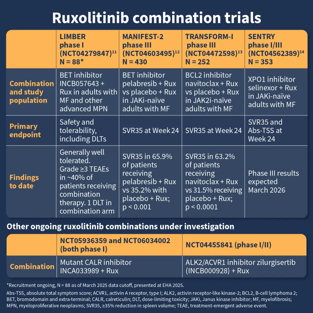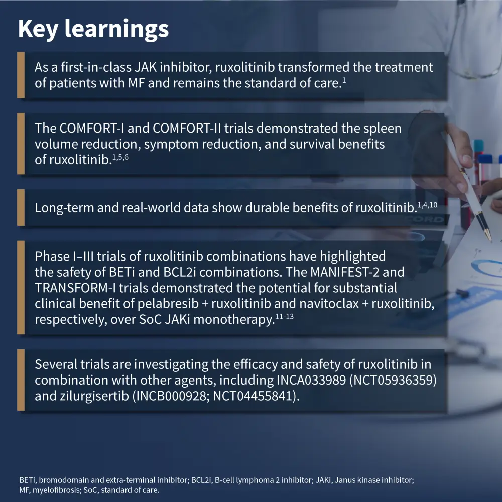 Ruxolitinib is now under investigation in new formulations and in combination with other agents in several ongoing trials. Explore our mini-module to find out more.