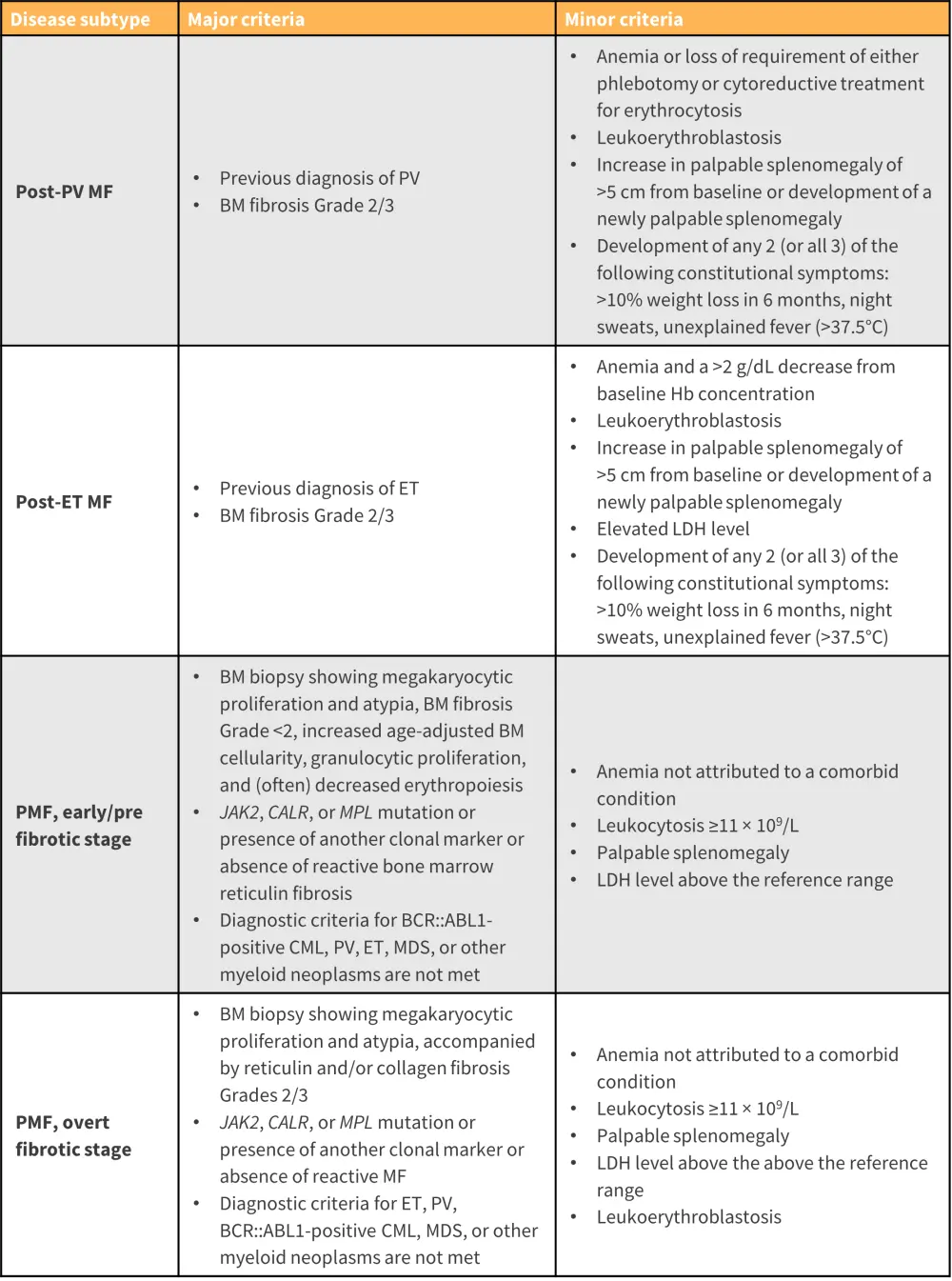 Figure 4. ICC major and minor criteria for the diagnosis of MF*