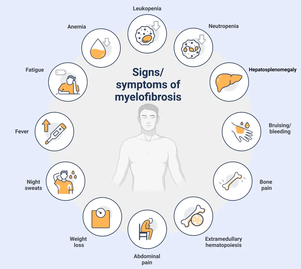 Myelofibrosis (MF) is the most aggressive myeloproliferative neoplasm (MPN) disease subtype, characterized by abnormal megakaryocyte proliferation and bone marrow granulocytes.1,2 MF can be divided into pre-fibrotic and fibrotic variants, each presenting at different stages of increased reticulin fibrosis, which ultimately progresses to collagen fibrosis and osteosclerosis.2 The aggressive clinical nature of MF is linked to a propensity for transformation to acute myeloid leukemia (AML), which accounts for approximately 20% of deaths.3 Here, we provide a disease overview of MF.