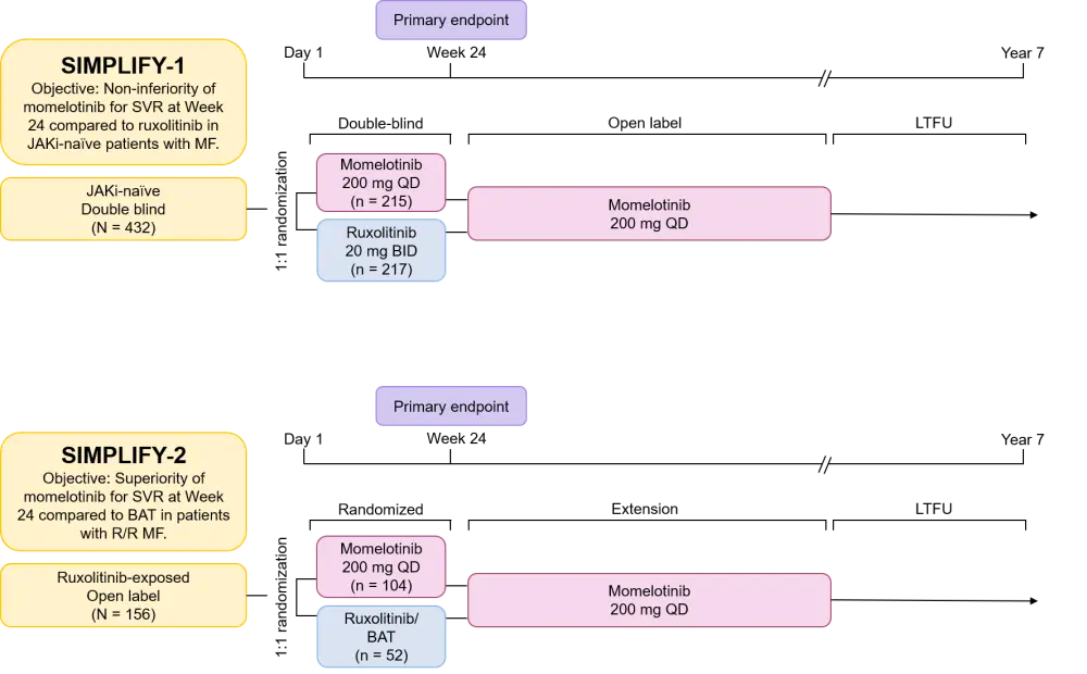 For more information on the long-term safety analyses of momelotinib in patients with MF, as determined in the SIMPLIFY-1/2 studies, click here.