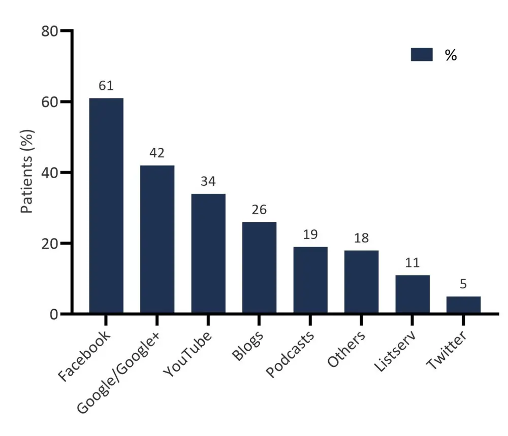Figure 1 shows the patient responses to the question regarding which social media platforms they used to research their condition.