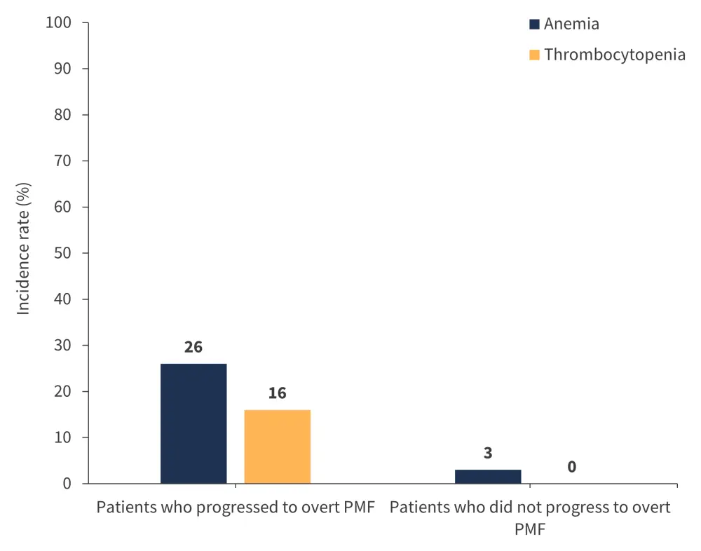 Figure 6. Incidence of anemia and thrombocytopenia among patients who progressed from prefibrotic PMF to overt PMF within 5 years of diagnosis*