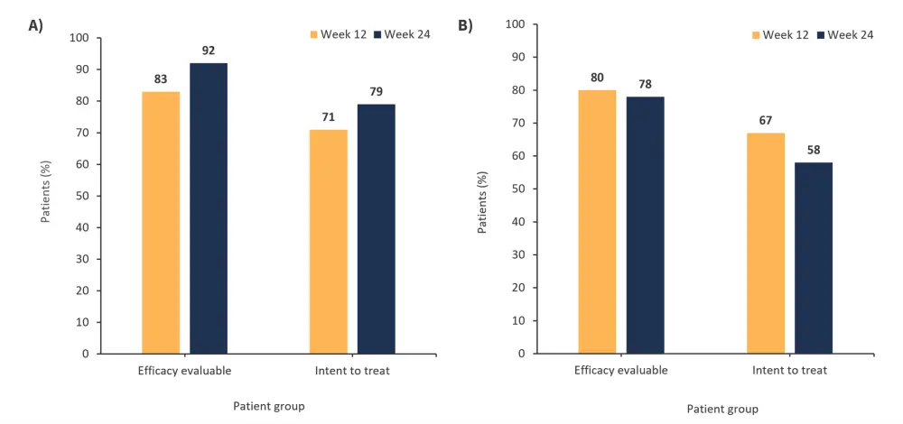 Figure 2. A SVR35 and B TSS50 at Week 12 and Week 24*