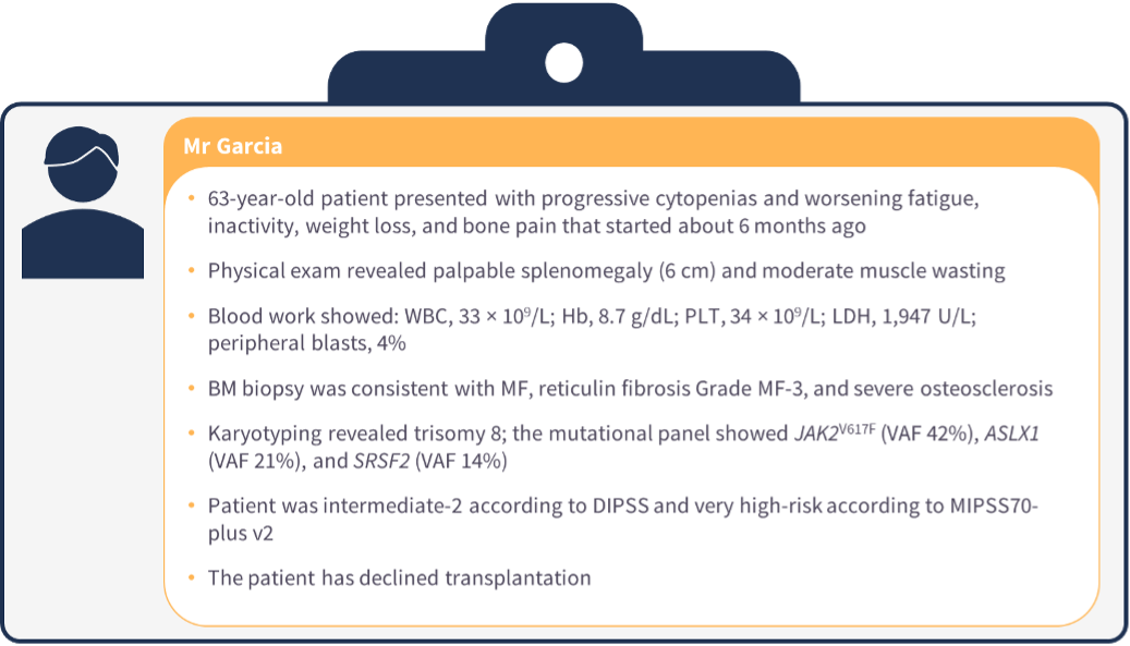 Guglielmelli then presented three patient cases and discusses the clinical evidence influencing treatment decisions specific to each case (Figures 1–3).