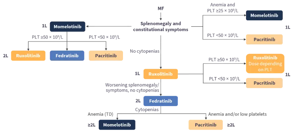 Guglielmelli concluded by presenting a treatment algorithm for the selection of Janus kinase inhibitors for patients with MF based on cytopenia (Figure 4).